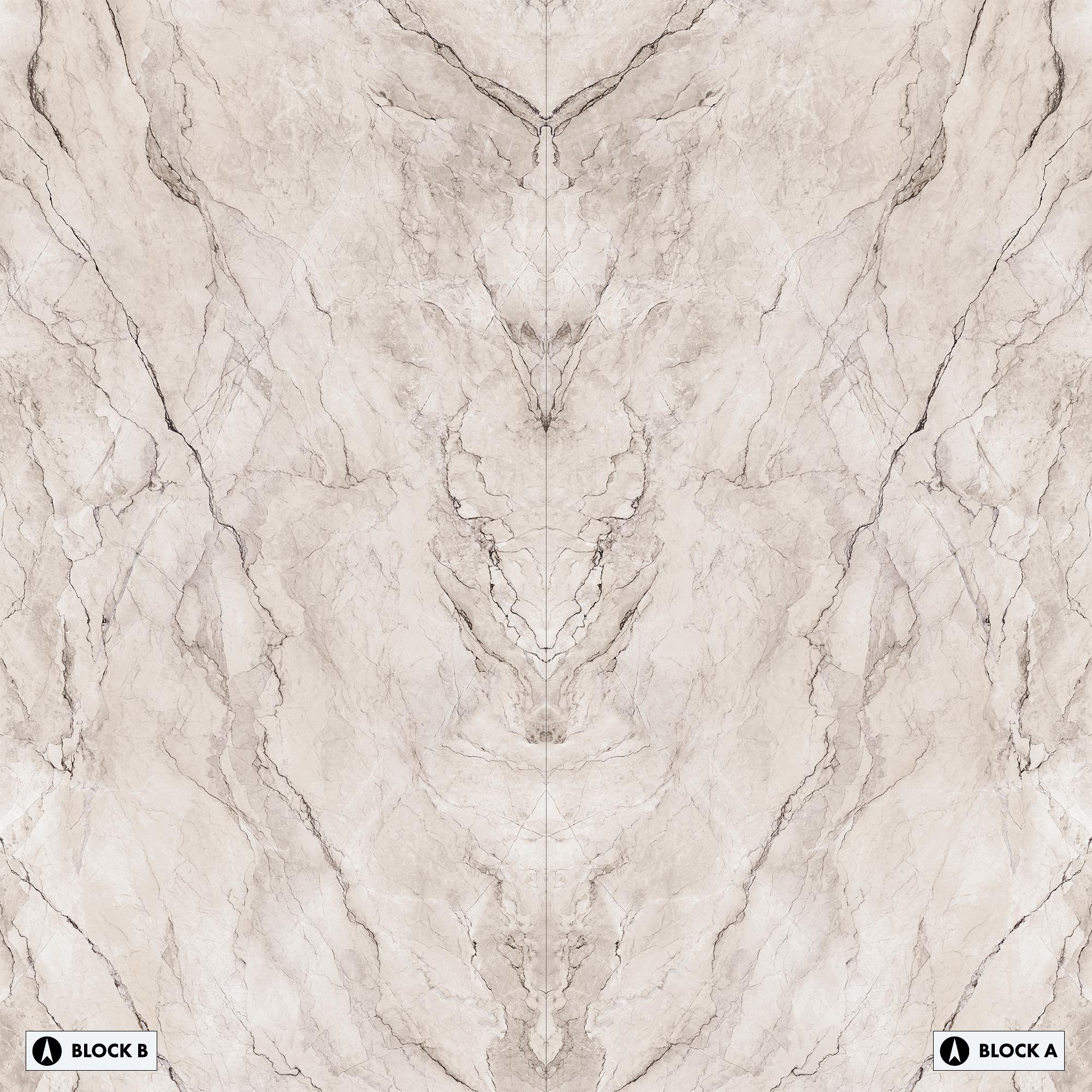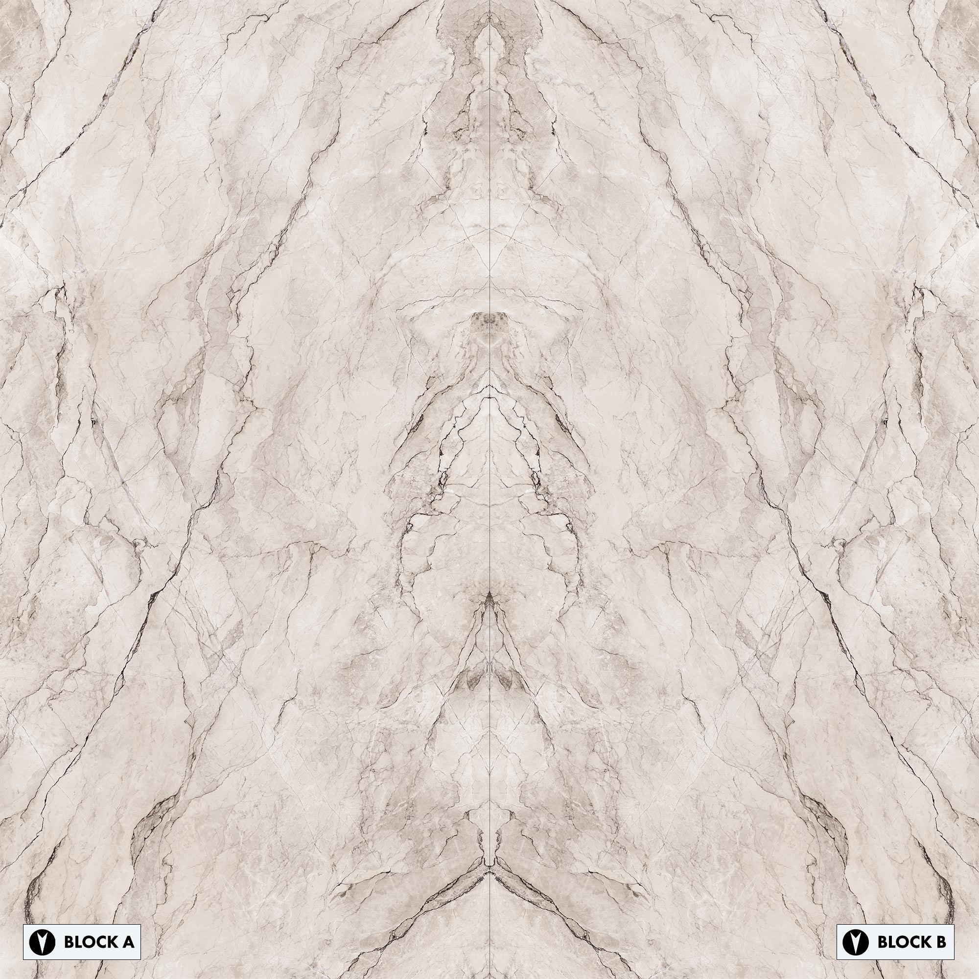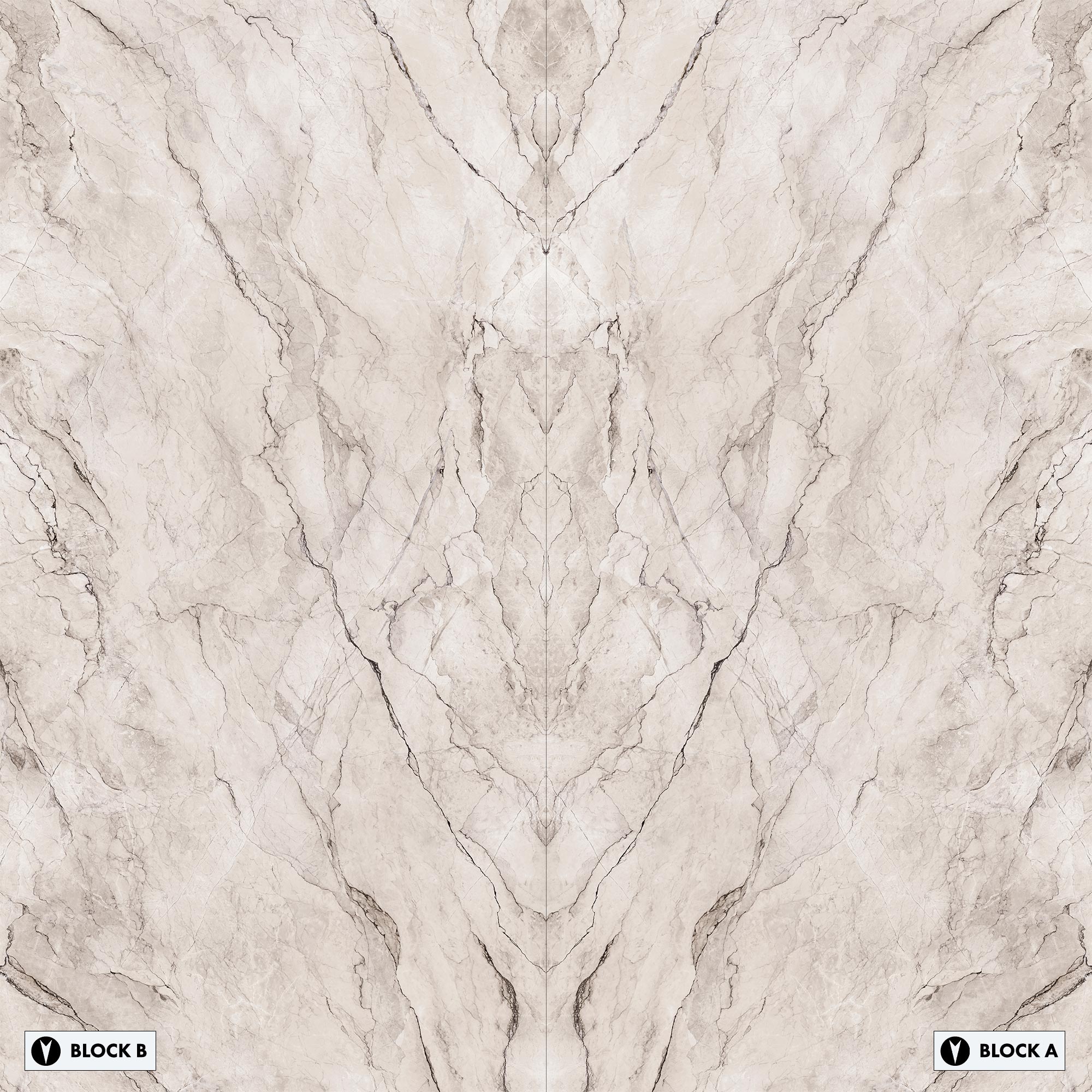 This large format bookmatched porcelain slab is 12 mm in thickness and available in one size measuring 320 x 162 cm. Please note this item is supplied non-rectified. Dimensions quoted for 12 mm non-rectified slabs are nominal ±20mm. The process of rectification eliminates any shape variance between slabs.