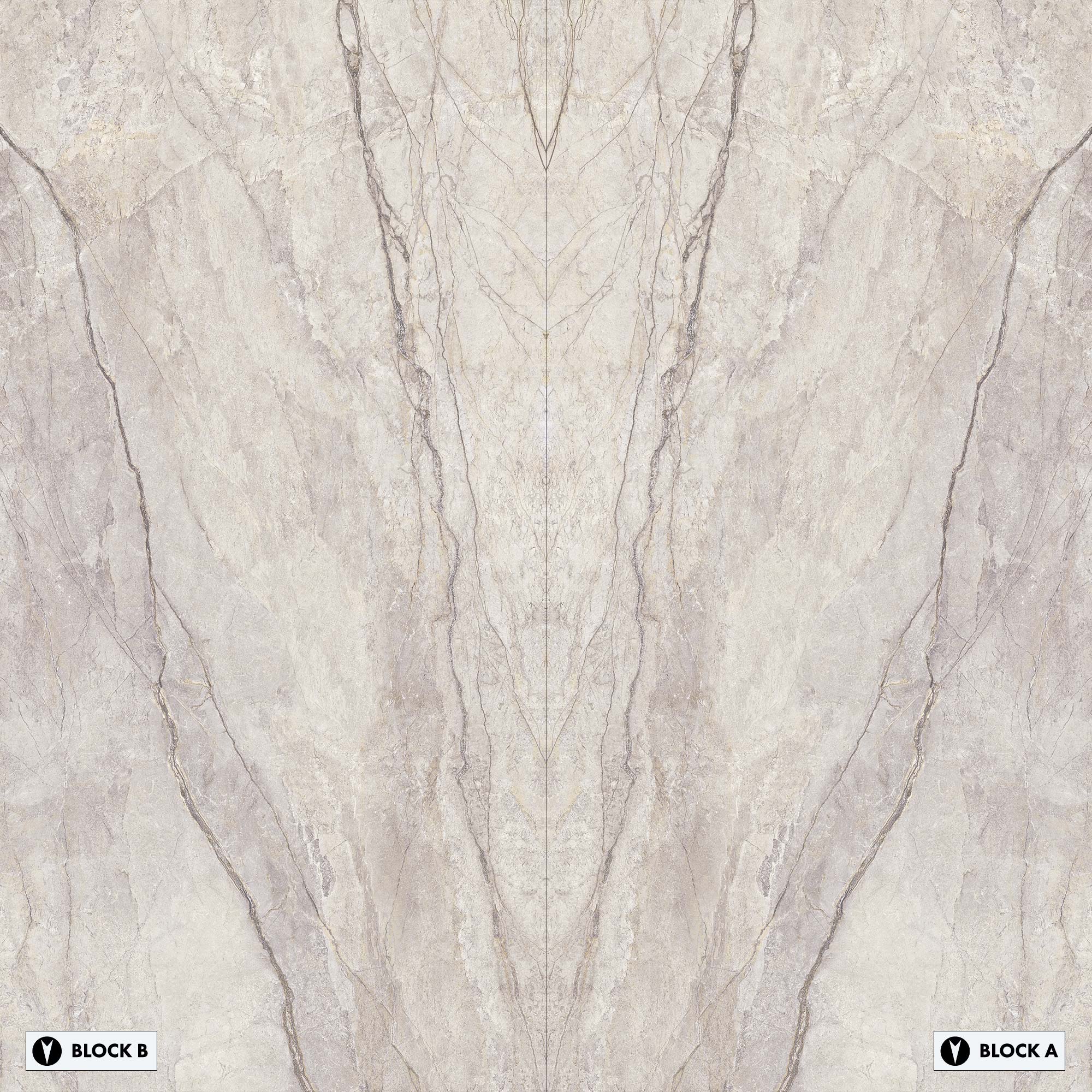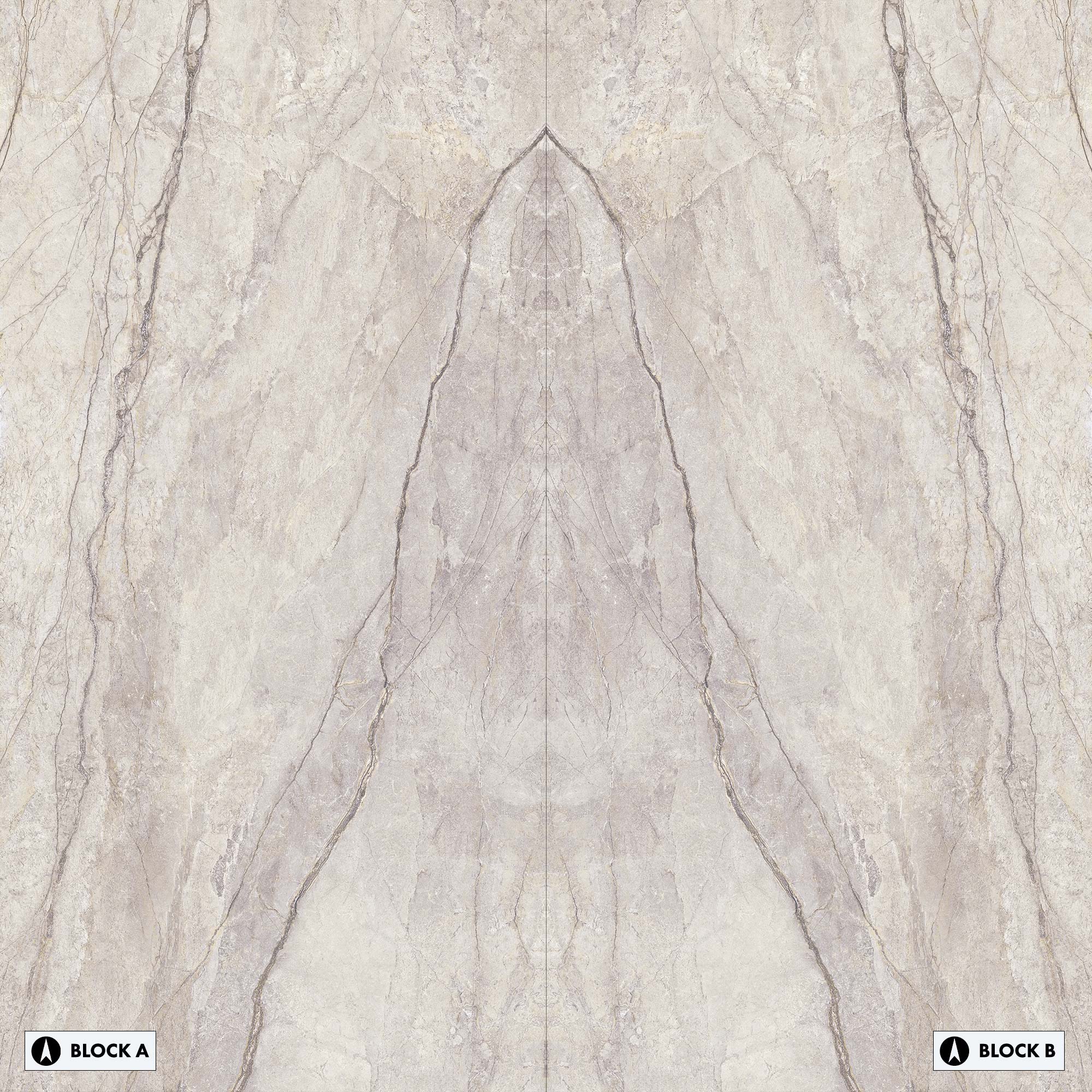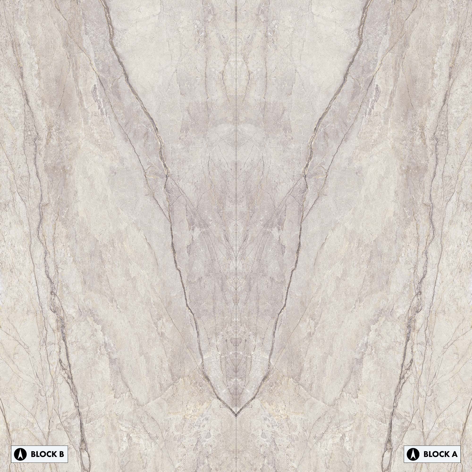 Silver Root Light Bookmatched is a large format bookmatched porcelain slab and part of the TM12 Bookmatch Collection. Silver Root Light Bookmatched comes in 2 finishes - Brushed & Naturale (R9). This large format bookmatched porcelain slab is 12 mm in thickness and available in one size measuring 320 x 162 cm. Please note this item is supplied non-rectified. Dimensions quoted for 12 mm non-rectified slabs are nominal ±20mm. The process of rectification eliminates any shape variance between slabs. Slab trimming and cut-to-size services are available. For more information about Silver Root Light Bookmatched (PP-54254), please contact Platform Plus at partners@platform-plus.com.