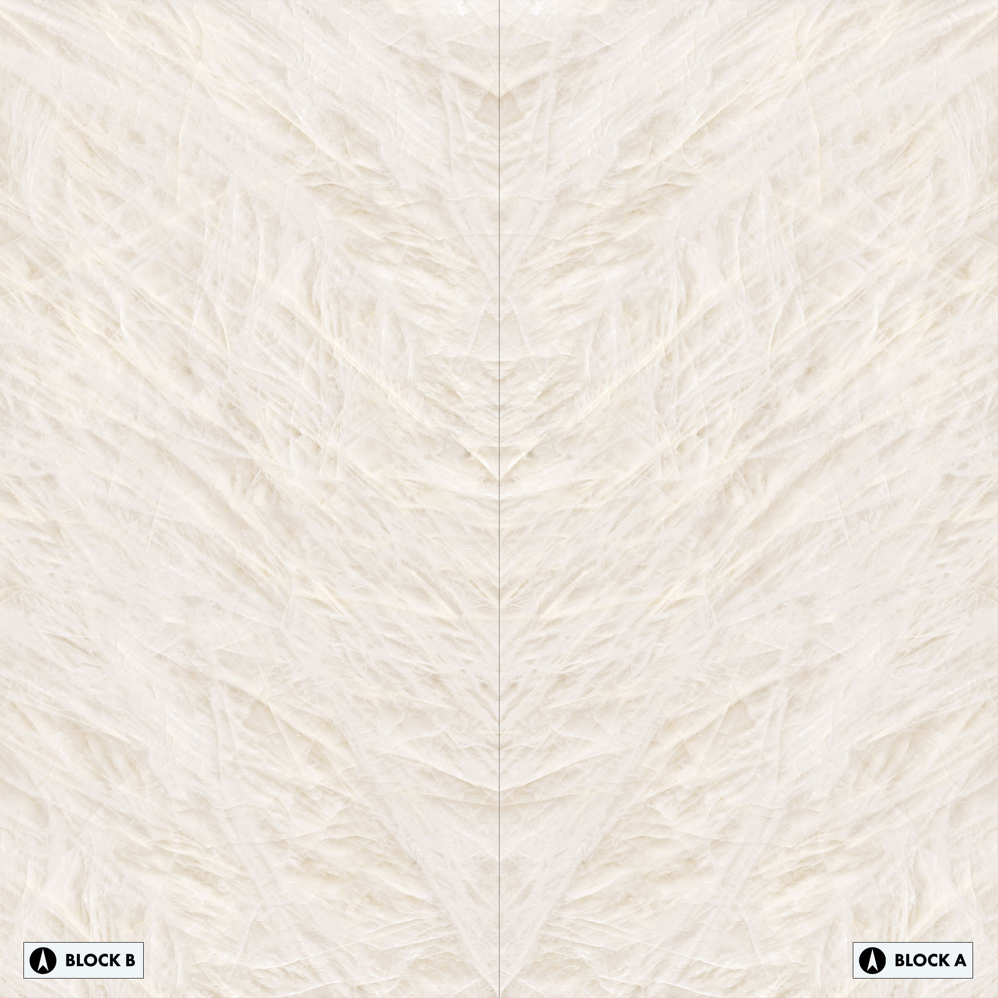 Each factory uses its own terminology for surface finish, these are shown below. Vitrum White Bookmatched comes in one finish - Full Lappato.